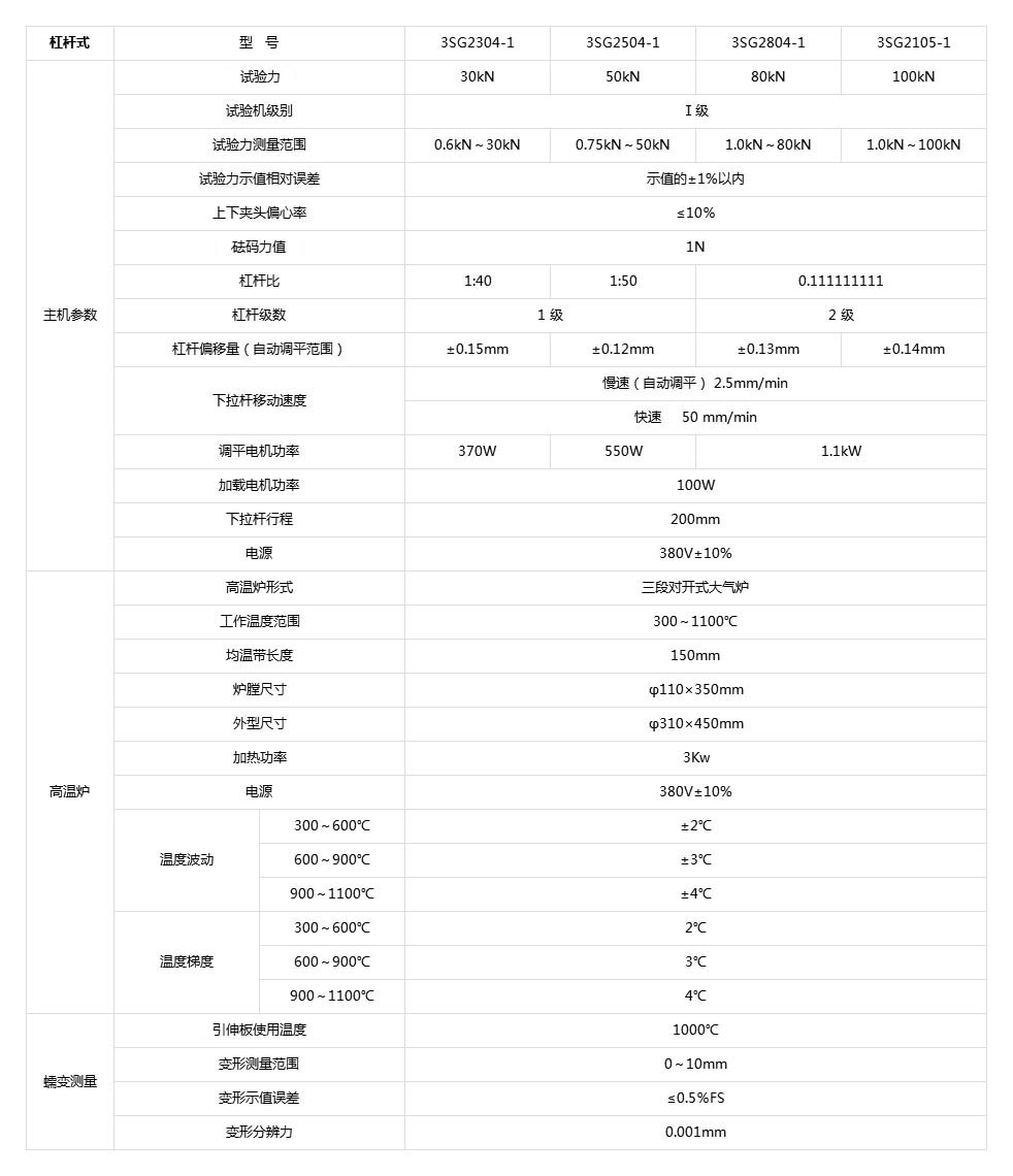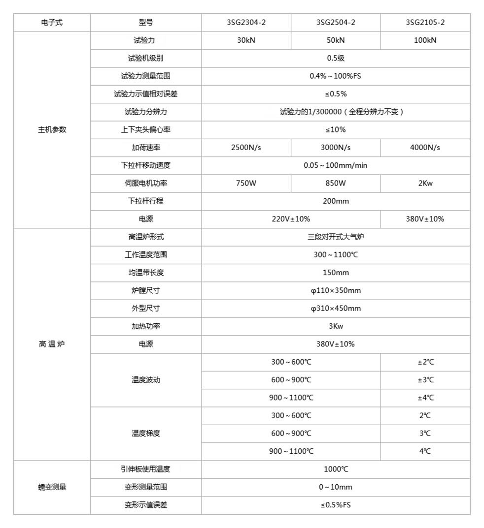 高温蠕变持久强度试验机分为3SG-200-1系列的杠杆式高温蠕变持久强度试验机和XBG-200-2系列的电子式高温蠕变持久强度试验机。