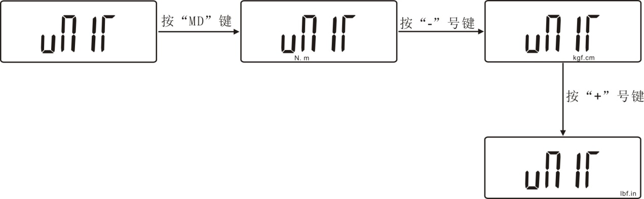 (UNIT)单位设定:本仪器可切换3个单位,进入单位设置界面后,按“+”和“-”键来选择单位,如下图所示: