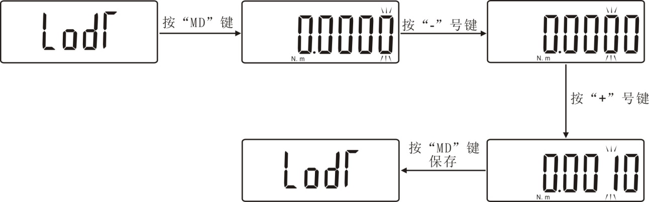 (LODT)测试值下限设定:设定测试值下限。低于下限为超出范围,“MIN”显示,本仪器下限值默认为0。若想重新设定下限值,在此设置项目下,用“+”和“-”键设定。按“MD”键保存后回到设置界面。如下图所示: