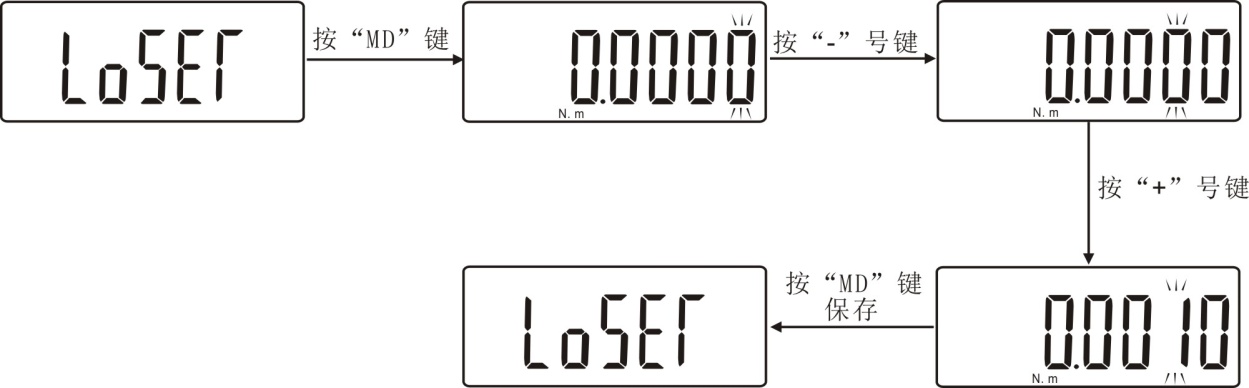 (LOSET)峰值最小保存值:最小峰值保存值,本仪器峰值最小保存值默认为0。峰值模式下,当前值小于该值时,峰值将不被保存。在此设置项目下,用“+”和“-”键可设定峰值最小保存值。如下图所示: