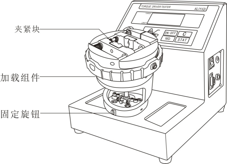 4.4 将扭矩起子放入加载组件,并用夹紧块固定。