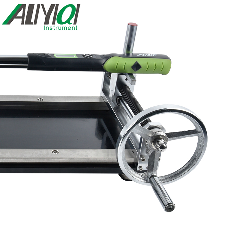 2、将被检物的四方测头放入该检定仪的承力四方孔内,同时使用得被检物另一端的手柄在高度调节块上方(若长度不够时,可自由调节整套加载装置)。