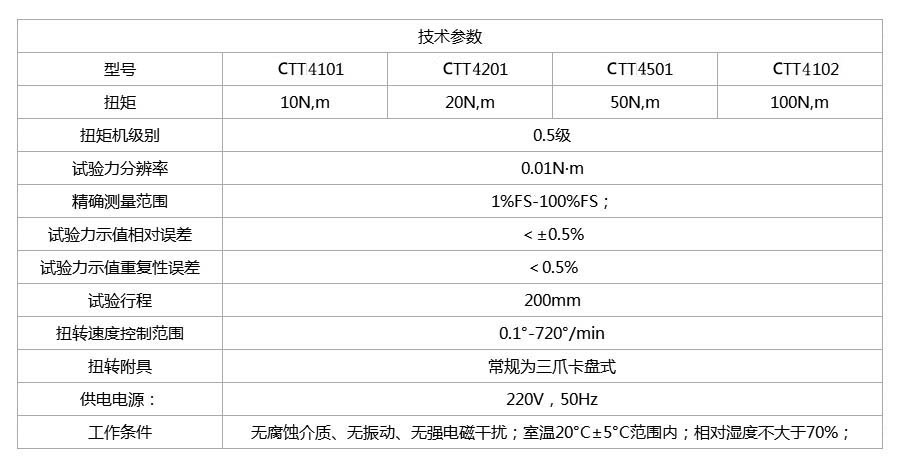 本试验机是根据GB/T 2611-2007《试验机通用技术要求》、GB/T10128-1998 《金属室温扭转试验方法》和JB/T9370—1999《扭转试验机技术条件》标准制造。 检验标准:JJG269-2006《扭转试验机》 试验方法:YY/T0018-2016《骨接合植入物 金属接骨螺钉》