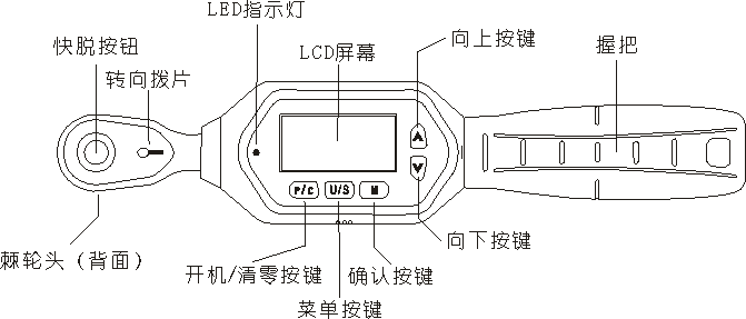 4.6、 扳手为了省电,如无操作。大约在5分钟后会进入睡眠模式。按“C”键可唤醒扳手
