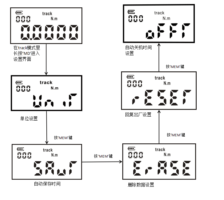 1、按MEN进行切换,按MD键退出设置模式回到Track模式,UNIT 单位设置按上下键切换