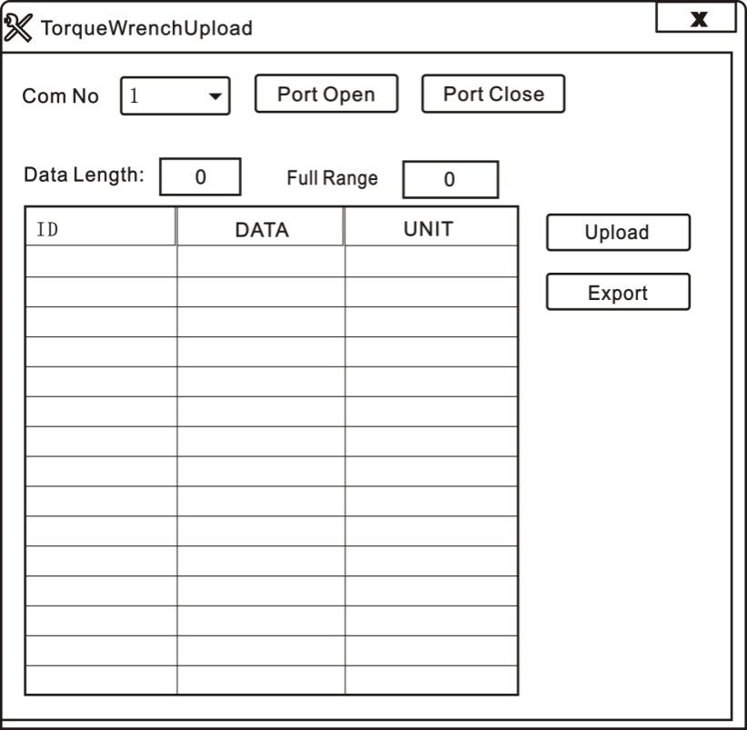 使用制造商提供的光盘,在电脑上安装好通讯软件,然后在数显扭矩表开机状态下用数据线连接数显扭矩表和电脑,双击软件图标,打开软件,先选择“Com No(端口号)”,再点击“Port Open”,然后点击“Upload”,这时表格上会出现本仪器内的存储数据,表示上位机已连接成功,已达到读取存储数据的目的。