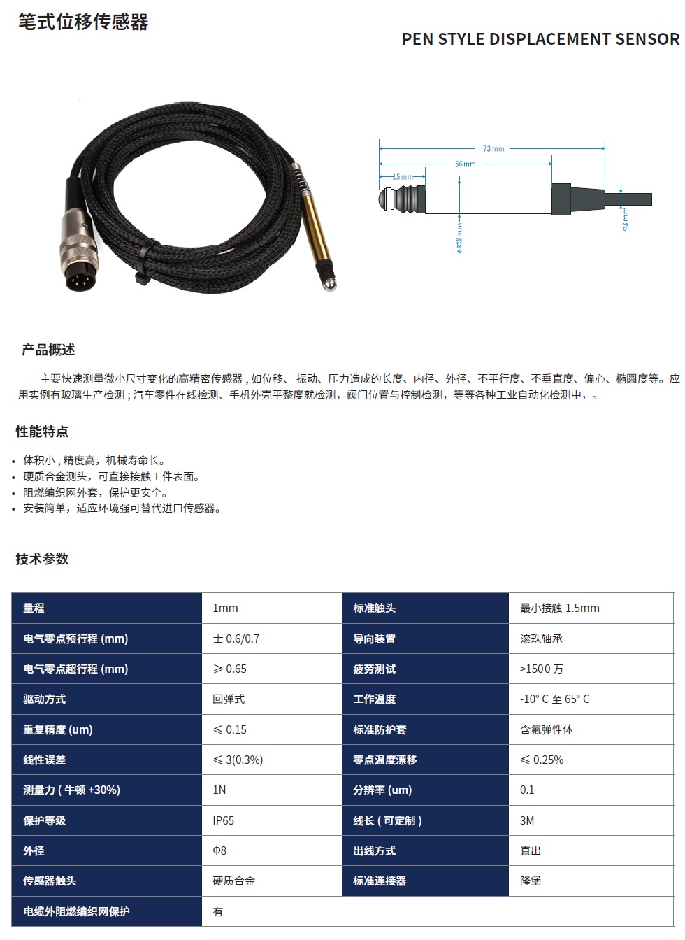 气推式笔式位移传感器